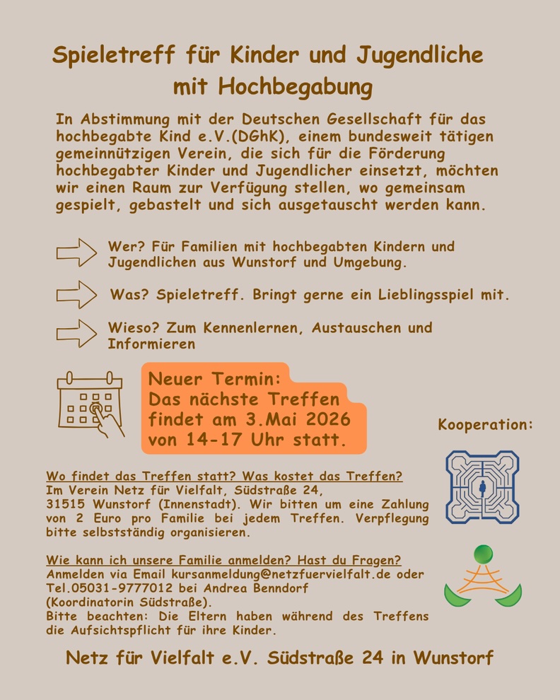 - Bei unserem Familien-Spieletreff finden keine Beratungsgespräche statt.